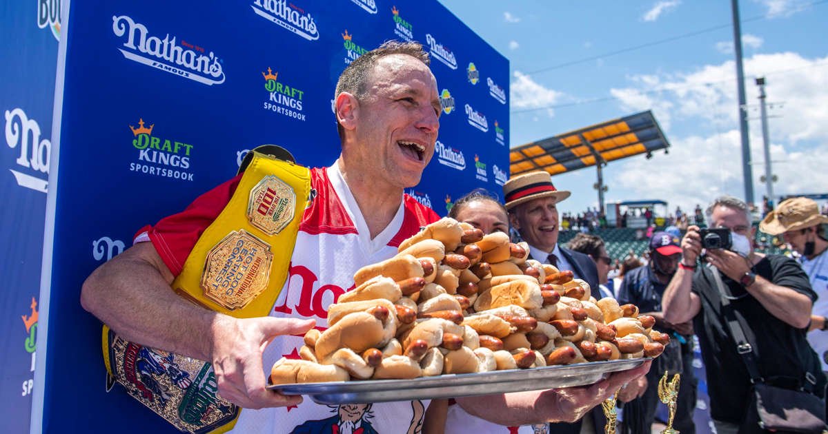 Joey chestnut dominates the field, eating 71 hot dogs to win the nathan's famous fourth of july hot dog eating contest for the 12th time. How much time is the hot dog eating contest? The nathan's hot dog eating contest is an annual american hot dog competitive eating competition. This annual international hot dog eating contest has gained notoriety in the past several years. Over the years chestnut has taken part in the independence day event, chestnut has wolfed down a record 1,089 hot dogs.